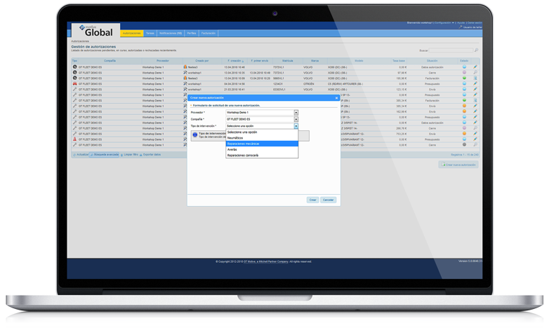 • Apertura/cierre del ciclo de autorización por la propia compañía en nombre del taller.